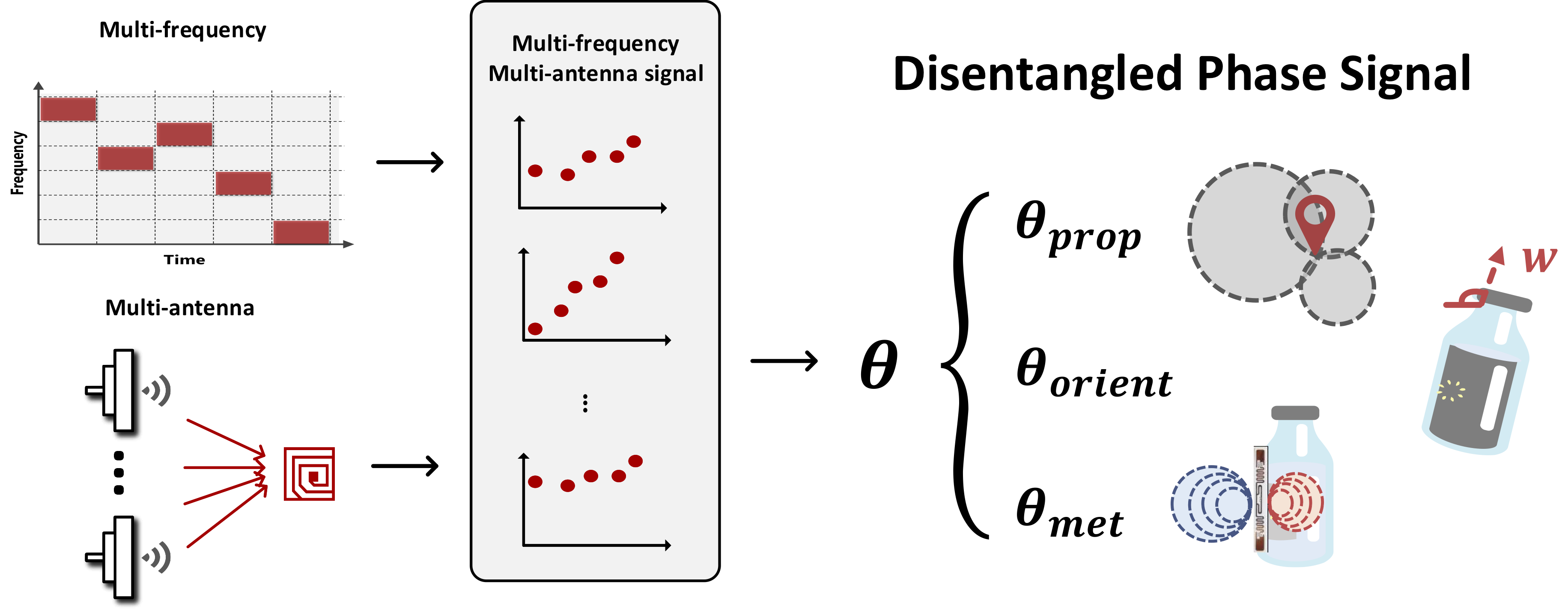 Existing approaches of RFID-based sensing are often restricted in terms of the sensing capability or accuracy, due to the phase entanglement problem: the phase of the RFID signal is jointly affected by multiple factors, and the change in the signal phase cannot be directly attributed to any one of them. In order to tackle this problem, we propose RF-Prism, a versatile sensing approach that can simultaneously infer multiple physical factors (i.e., location, orientation, and material of targets), purely based on the phase readings. RF-Prism includes a comprehensive model to describe how different physical factors affect the phase of the received signal, and a complete design to disentangle the phase in the multi-frequency and multi-antenna scenario. We implement RF-Prism and evaluate its performance with extensive experiments. The results show that RF-Prism simultaneously achieves a mean localization error of 7.61cm, a mean orientation error of 9.83 degrees, and 87.9% material identification accuracy, which outperforms state-of-the-art approaches. This work appears in IEEE ICDCS 2021.